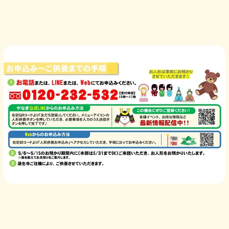 お人形たちに「ありがとう」と「おつかれさま」を伝えるこの機会、ぜひご活用ください。