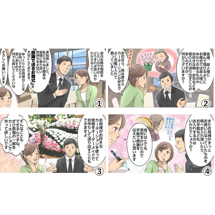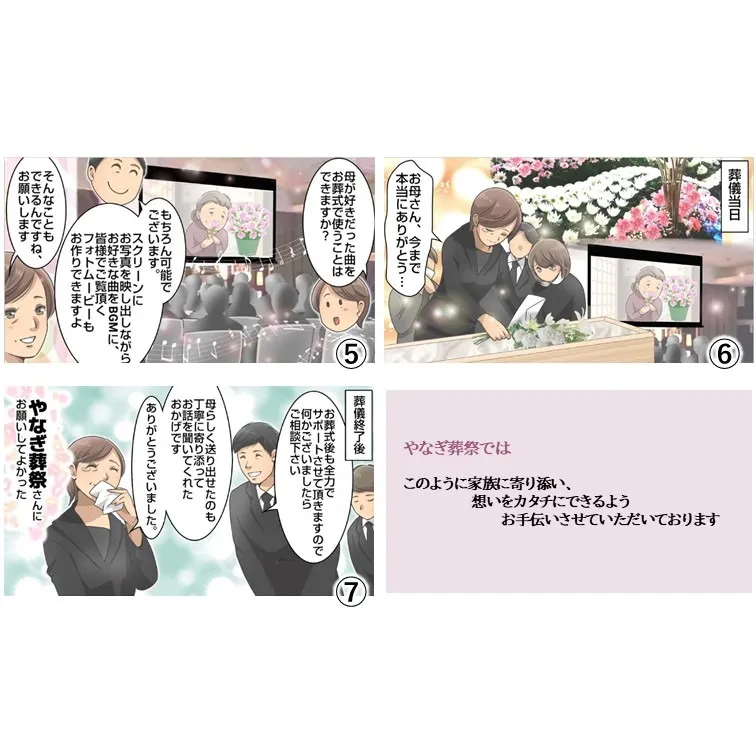【漫画で紹介】お葬式の打合せってどんな流れ?やなぎ葬祭の場合はこんな感じです。